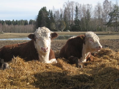 Tässä hieman tarinoita vuosien varrelta.. Taas mennään. . Kevään 2017 ensimmäiset vasikat ovat ennättäneet maailmaan. Nimet alkavat tänä vuonna O-kirjaimella, joten oisko nämä Obelix ja Ostrava.. Kaikenkaikkiaan meille pitäsi syntyä noin 60 kpl uusia ja toivottavasti pirteitä vasikanalkuja kahdeksasta eri isäsonnista. Astujasonnimme viime kesänä olivat Säynälän Kunkku, Luoteen Kasmir, KB Lewis ja Aph Buster. Lisäksi käytimme keinosiemennyssonneja Wirruna Justin, Axa Golden-Oak Xceed, Square-D Tortuga ja Burnside Rib Eye. Emolehmätilan syystoimet ovat jälleen täydessä käynnissä. Sisäruokintakausi on alkanut ja sen myötä vasikat ovat vieroitettu muutama viikko sitten. Osa sonnipojista on jälleen lähtenyt Ali-Lekkalan tilalle kasvamaan ja kehittymään päätyen mahdollisesti huutokaupattavaksi keväällä 2017. Valintoja ja karsintaa pohditaan myös puolivuotiaiden lehmävasikoiden kohdalla. Osa jää kotiin ja osa siirtyy eteenpäin. Samainen karsinta on käynnisä myös emojen suhteen. Osa on tullut vanhaksi, joillakin saattaa olla vikaa jaloissa tai maidontuotannossa ja osasta ei muuten vaan ole emolehmäksi. Jalostustyötä siis tehdään ja eläinainesta pyritään kehittämään ja viemään eteenpäin. Emotilan arkea siis. " Naudanlihaa grillistä " Yhteistyössä Längelmäen maa- ja kotitalousnaisten kanssa järjestimme kesällä 2016 "Naudanlihaa grillistä" grillauskurssin pihapiirissämme. Kurssin vetäjänä toimi Outi Penttilä ja tällä kertaa kurssi oli suunnattu vain miespuolisille hekilöille. Kurssin suosio hieman yllätti meidät kaikki ja osallistujia saapuikin lähes 20 henkilöä, mikä oli todella hienoa seikka. Illan menuu oli seuraava: *Naudanliha-carpaccioa parmesanlastujen kera *Naudanlihaa ja rieskaa jogurttikastikkeella *Wallenbergin pihvit *Lihaa ja kasviksia vartaassa *Naudanpaistia ja naurista *Kuusenkerkkää ja puolukkaa *Grillattua kukkakaalia ja perunaa yrttiöljyn kera *Mansikoita ja marenkia Tunnelmasta päätellen osanottajat viihtyivät ja ruoka maistui. Kiitokset kaikille osallistujille. ![]() Meillä kotona kasvamassa olevien nuorten sonnien tietoja on päivitetty "Kauppa "-välilehdelle. Vuodenpainot saadaan maaliskuun aikana. Lisää sonnejamme löytyy HK:n sonnihuutokaupasta Tammelasta huhtikuun lopussa. Tilasonnimme APH We Will Rock You on viimeinkin laitettu myyntiin. Sen tietoja voit käydä tarkastelemassa "Karja -> Tilasonnit"- välilehdeltä. Keväällä 2015 syntyneet vasikat on jälleen saatu vieroitettua ja tilamme astujasonnitkin ovat saaneet arvojärjestyksensä selvitettyä, joten siirtyminen kohti talvikautta voi alkaa. Kuiva ja aurinkoinen alkusyksy on jatkanut mukavasti eläinten ulkosalla viihtymistä ja samalla helpottanut talonväen työtaakkaa. Seuraavana olisi edessä vieroitetujen vasikoiden punnitus ja parhaiten kasvaneiden esiinseulonta. Tilaltamme lähtee tänä syksynä noin 15 lupaavaa sonnivasikkaa Ali-Lekkalan kasvattamoon kasvamaan ja kehittymään. Keväällä 2016 parhaat niistä päätynevät jälleen tarjolle sonnihuutokauppaan. Myös lehmävasikoiden osalta valitsemme jälleen ne, jotka jäävät tilallemme uudistukseen ja samalla tulee seulottua myös myyntiin päätyvät yksilöt. Syyskuun alussa Kaisa Sirkko Fabasta kävi vierailulla tilallamme. Keskustelimme pari tuntia tilamme nykyhetken toiminnasta ja samalla suuntasimme ajatuksia myös hieman tulevaisuuteenkin. Vierailunsa pohjalta Kaisa kirjoitti oheisen tekstin Nautalehden syksyn 2015 numeroon. Nautalehti.pdf Eläimet laiduntavat jälleen tyytyväisinä kesälaitumilla. Olemme jakaneet karjamme neljään noin 15-20 emon laumaan ja joka laumassa on tietysti oma sonni mukana. Lisäksi keinosiemensimme kymmenkunta emoa tuontisonneilla. Yksi laumoistamme laiduntaa jälleen noin 20km päässä kotoa, Oriveden Pappilanlahden rantamaisemissa. Laidunnuksen tavoiteena on estää alueen umpeen kasvaminen ja pusikoituminen. Kevään sonnihuutokaupasta Tammelasta hankimmme uusia sukuja karjaamme ostamalla Inkereen kartanosta lähtöisin olevan sonnin KB Lewis X. ![]() Kevään 2015 poikimakausi on jo hyvässä vauhdissa. Uusia vasikoita syntyykin päivittäin nauttimaan kuivista ja aurinkoisista kevätkeleistä. Kevään edetessä lähestyy myös HK Agrin sonnihuutokauppa Tammelassa. Lokakuussa sinne kasvamaan siirtyneet sonnimme ovat kasvaneet ja kehittyneet mukavasti ja parhaat niistä ovat ehdolla huudettavaksi päätyvien eläiten listalla. Kasvutuloksiin pääsee parhaiten tutustumaan HK Agrin www-sivujen kautta. Päivi Anttila Fabasta kävi jälleen rakennearvostelemassa tilallamme myynnissä olevat sonnit. Arvostelun tuloksista parhaiten lisäinfoa saa Päiviltä. ![]() Uusi vuosi 2015 on käynnistynyt ja kunnon talvikelit ovat saapuneet myös Orivedelle. Talvinen pakkassää ei karjaamme haittaa vaan ne nauttivat leppoisasti oleillen auringonpaisteesta ja kuivista pakkasilmoista. Keväänaikana odotamme karjamme lisääntyvän kuudellakymmenellä virkeällä ja elinvoimaisella hereford-vasikalla. Ensimmäisten pitäisi ilmestyä maailmaan maaliskuun alkupäivien aikana. Vuodelta 2014 meillä on tilallamme kasvamassa kymmenkunta siitoskäytöön tarkoitettua sonnia. Ne tulevat myyntiin huhikuusta eteenpäin. Jokakeväiseen tapaan osa sonneistamme on kasvamassa myös Ali-Lekkalan sonnikasvattamossa Tammelassa. Parhaat valikoituvat jälleen huutokauppaan, joka pidetään huhtikuussa 2015. Joten näillä mennään... ![]() Kesäkuvia 2014 ![]() ![]() Kevään 2014 poikimakausi on taasen hyvässä vauhdissa. Uusia, valkopäisiä Herefordin alkuja syntyykin lähes päivittäin. Kaikenkaikkiaan odotamme tilallemme 60 uutta pirteää ja hyvin kasvaa vasikkaa. Aurinkoiset ja kuivat kevätpäivät ovat lisänneet niin vasikoiden, emojenkin kuin talon isännänkin viihtyvyyttä ja hermojen kestävyyttä... :) Samaan aikaan jo hieman kokeneemmat sonnipojat nauttivat kevätauringosta ja odottavat kesätöiden alkua.. Upea talvipäiv